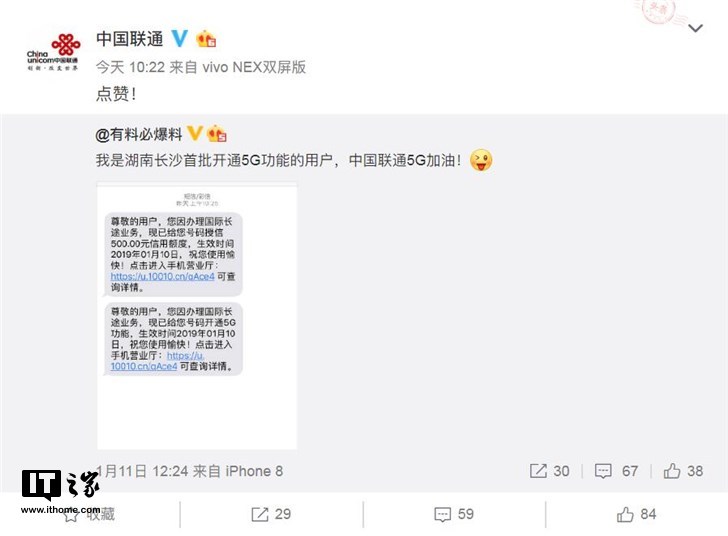 中国联通首批用户开通5G,称比4G速度快40-60倍